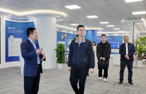 佘堅一行首先參觀(guān)了遠望信息展廳,了解了企業(yè)發(fā)展歷程、主營(yíng)業(yè)務(wù)介紹及核心技術(shù)實(shí)力,并重點(diǎn)聽(tīng)取了遠望信息在數字政府安全防控體系建設領(lǐng)域的主要業(yè)績(jì)成果。