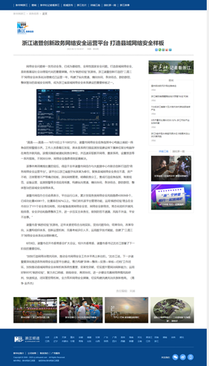 近段時(shí)間以來(lái),遠望信息為諸暨市構建的政務(wù)網(wǎng)絡(luò )安全防控體系頻繁受到媒體關(guān)注,新華社、人民日報、經(jīng)濟日報、浙江日報、浙江之聲等媒體紛紛點(diǎn)贊諸暨政務(wù)網(wǎng)絡(luò )安全——
